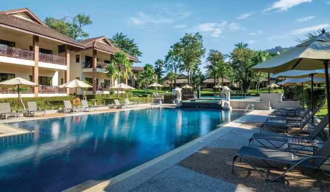 This quiet hotel is just a five-minute stroll from the most popular beach in Khao Lak. So, you can shimmy down there to sink your toes into biscuit-coloured sand or go for dips in the Andaman Sea whenever you like. Back at base, a pair of sunlounger-lined outdoor pools are sheltered by tropical greenery – you’ll see pretty palms and leafy shrubs from your bed if you book a room with a balcony, too.