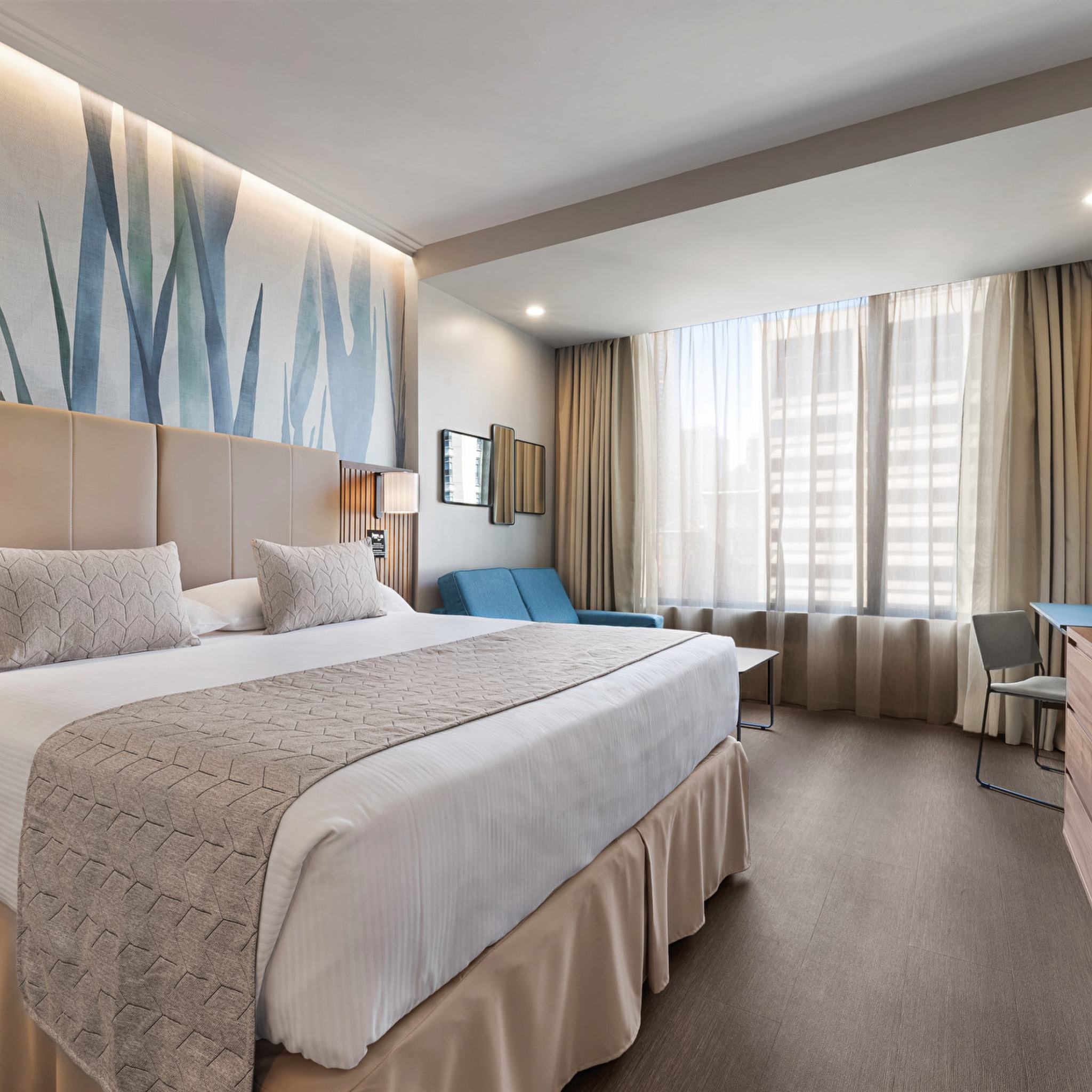 Located in the heart of Chicago, the Hotel Riu Plaza Chicago is the ideal choice for a city break in one of the best cities in the United States. This hotel offers a wide range of services and modern facilities that will make your stay an unforgettable experience.With a contemporary design and Chicago’s typical architectural style, the building that houses the Hotel Riu Plaza Chicago has 28 floors and 390 rooms equipped with all the amenities and facilities you need for a carefree getaway. All of the rooms have air conditioning, a small fridge, bathroom amenities, satellite TV, a safe and much more. In addition, there is a 24-hour fully equipped gym