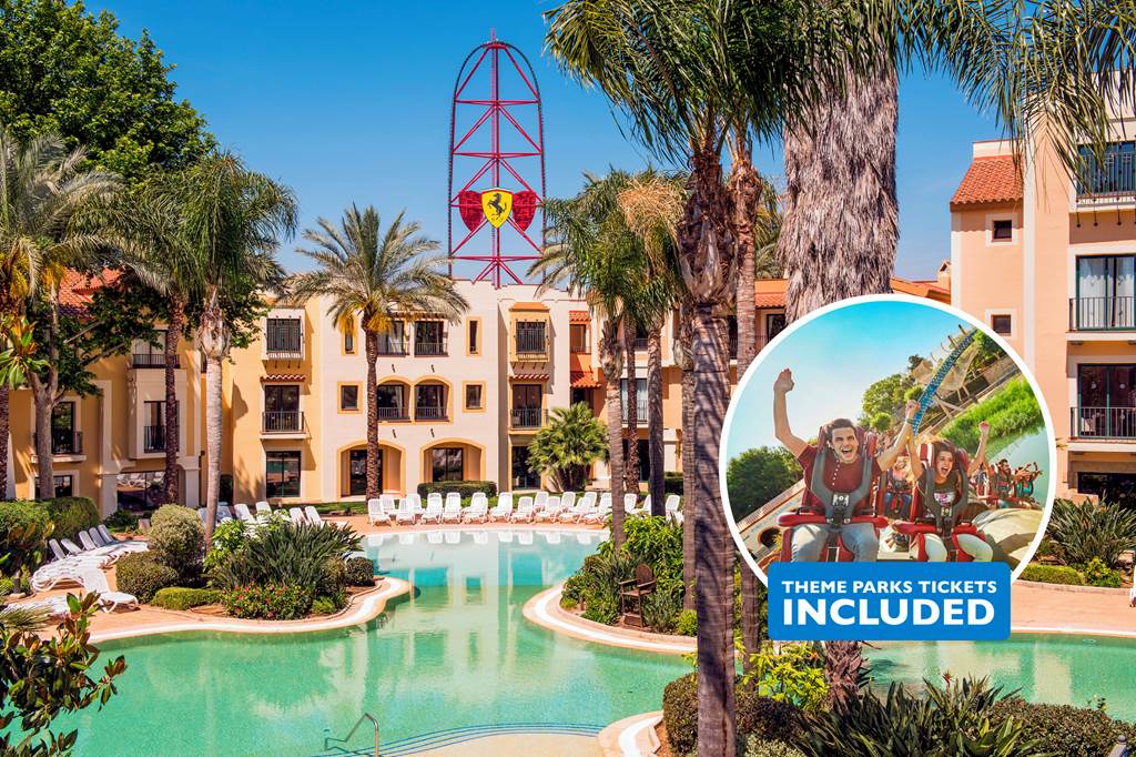 For all the warmth and authentic flavour of a friendly Mediterranean village, the Hotel PortAventura is perfect. Stroll under swaying palm trees and relax in pleasant squares centred by flowing fountains. You can dine al fresco by the spectacular boating lake or dive into the water yourself at any of the three outdoor swimming pools. Best of all, you?ll be mere moments from even more fun, with direct unlimited access to PortAventura theme park. Ready for some more exciting news? You will also get one day entry to Ferrari Land! Increase your adrenaline rush and experience the thrills this exciting park has to offer. And to top it all off, you even get discounted entry to Caribe Aquatic Park. Make sure you don?t miss out and book your stay now! Twin/Double rooms sleep up to 2 adults and 2 children and have air-conditioning, satellite TV, bathroom and hairdryer. Free Wi-Fi in rooms. For summer 2018 holidays guests also receive entrance for one day to Ferrari Land.