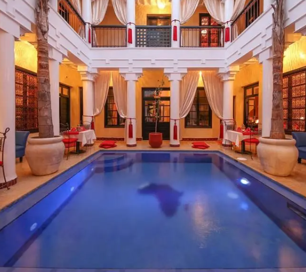 This intimate, charming riad will appeal to anyone seeking an authentic stay amongst the enchanting labyrinth of Marrakech’s ancient medina.Each of its rooms is richly decorated with traditional Moroccan furnishings and plush patterned textiles. Thoughtful extras such as artisan bath products, rainfall showers and thick bathrobes all add to the indulgent mood.