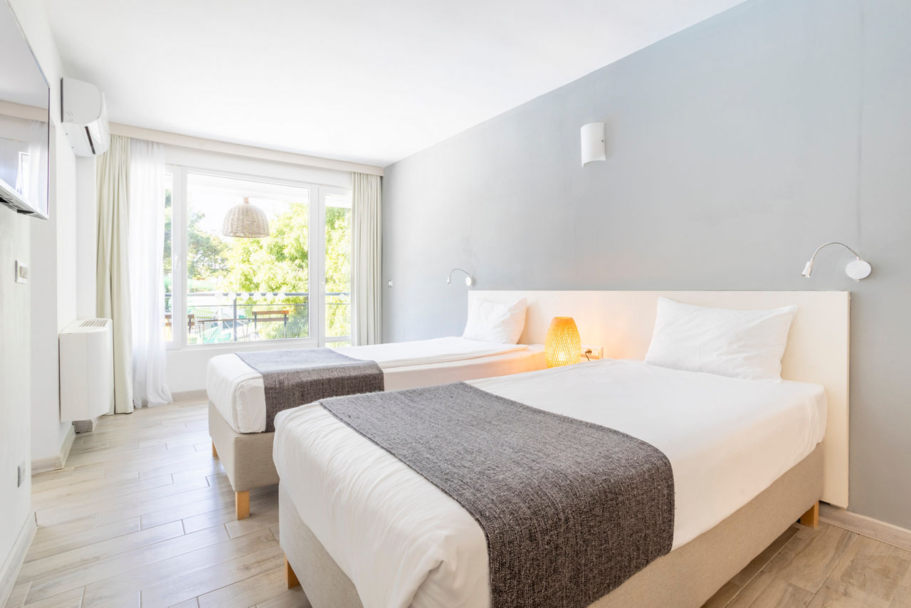 Modern, sophisticated and serene, the iHotel Sunny Beach offers guests a truly relaxing Bulgaria break perfect for families and couples alike. Ideal location and true tranquillity combine here with a beach on the doorstep and a soothing spa on-site with unlimited free use of the sauna. Bright and refreshing rooms encircle a pretty garden courtyard perfect for a slow morning cuppa in the sunshine. Or you can make a splash in the pool and enjoy an array of daytime animation on offer from salsa dancing and Zumba to Tai Chi and yoga. There's also a fantastic children's club to keep everyone smiling all holiday long.