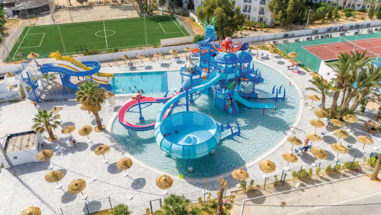 The Blue Beach Golf & Spa in Skanes is all kitted out for families, with its own waterpark, jungle-themed kids’ club, and cinema for children.