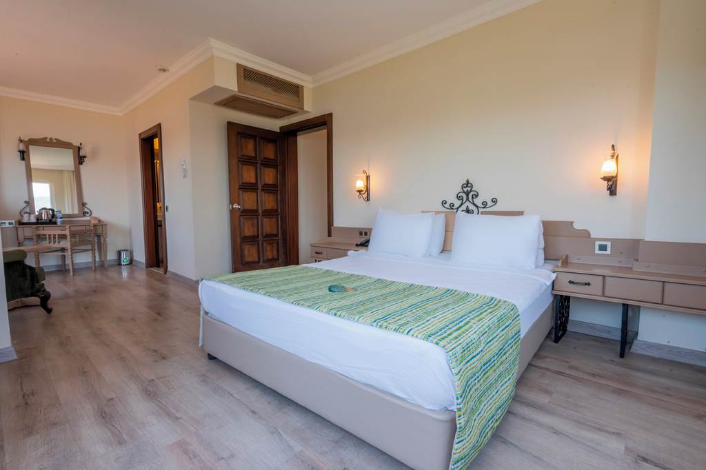 Looking out onto the stunning Marmaris Bay, Grand Yazici Club Marmaris Palace sits within lush pine forests surrounded by the deep blue sea. Perfect for families, this hotel is well-equipped for those travelling with little ones as it offers a colourful kids' club, pool with slides and adventure play house as well as lots of other fun activities! There's also plenty of facilities for adults in search of relaxation or action. Offering two lovely pool areas, a wooden sunbathing jetty stretching into the sea, a spa centre and tonnes of sports, there is something for everyone at this secluded hotel. Standard bungalows sleep up to 3 adults and 1 child and have bathroom containing a shower, air conditioning*, television, hairdryer, safety deposit box* and balcony or terrace. Room upgrade options and Sole Use rooms are also available.