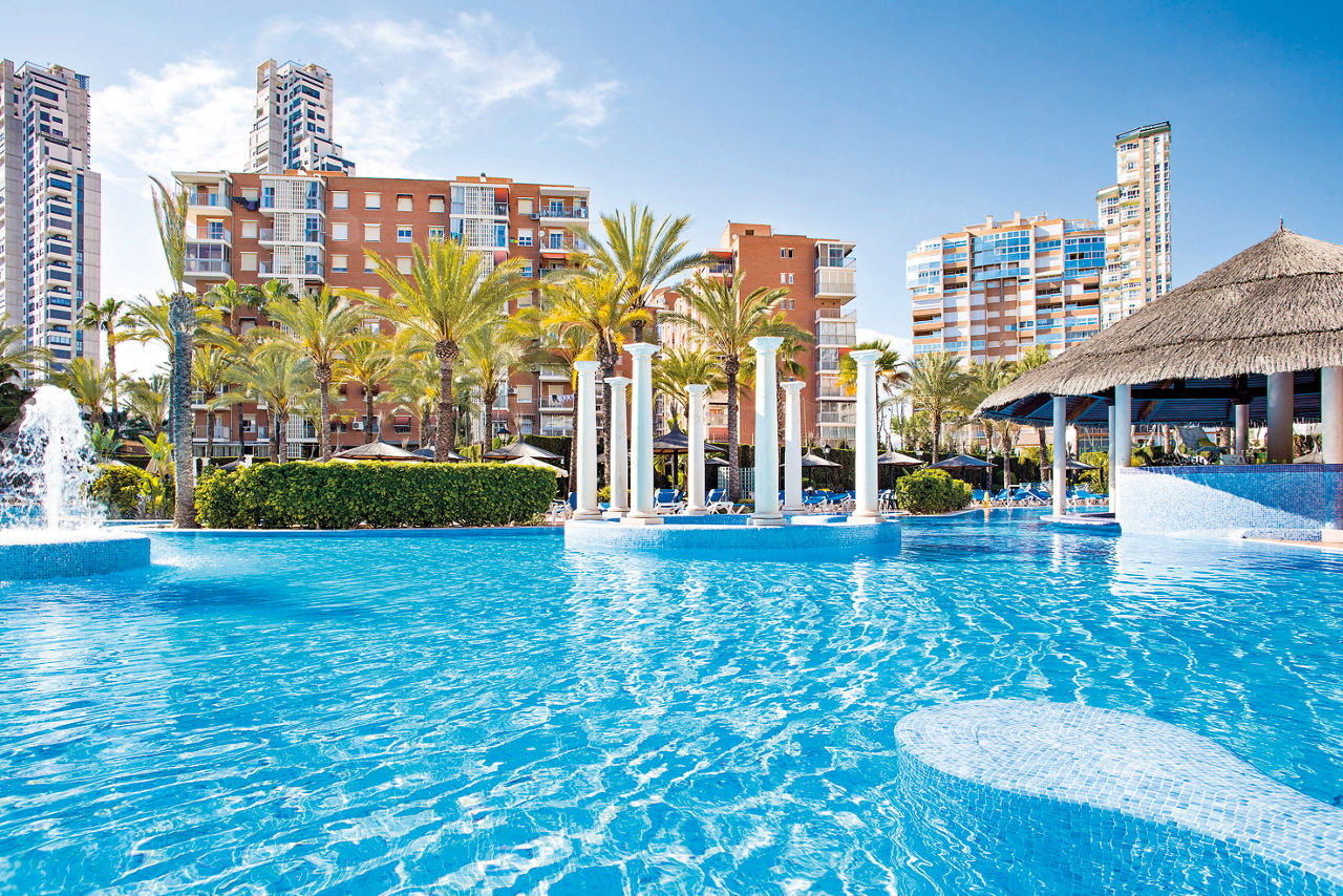 Between the cool pool area, array of activities and great entertainment programme, Sol Pelicanos Ocas Hotel is a real winner for a Benidorm break. It?s super central too, nestled right in the resort centre and just 300m from Levante Beach. The hotel itself boasts five palm-lined pools, including two children?s pools. And if you think the setting seems familiar, that's because it featured in the ITV hit show, Benidorm! Make the most of the family-friendly facilities, we?re talking a buffet-style restaurant, playground and kids' club. And you won't want to miss out on the iconic swim-up pool bar! Double and Twin rooms in the Sol Pelicanos sleep 3 adults or 2 adults & 2 children and have twin beds, single or fold-away bed, a bathroom, air conditioning (summer season)), TV and balcony or terrace. In Sol Ocas, Superior Double rooms are have a full bathroom, hairdryer , flat screen TV, fridge and have a balcony. Family rooms are also available and located in the Sol Ocas block with the same facilities as the Superior rooms but do not have a terrace or balcony. Guests will be allocated on arrival and guest must dine in the allocated hotel. Double and Twin rooms for Sole Use and Single rooms are also available. The Sol Ocas is closed from approximately mid-November until mid- April so guests will always be allocated in the Sol Pelicanos for stays during these dates.