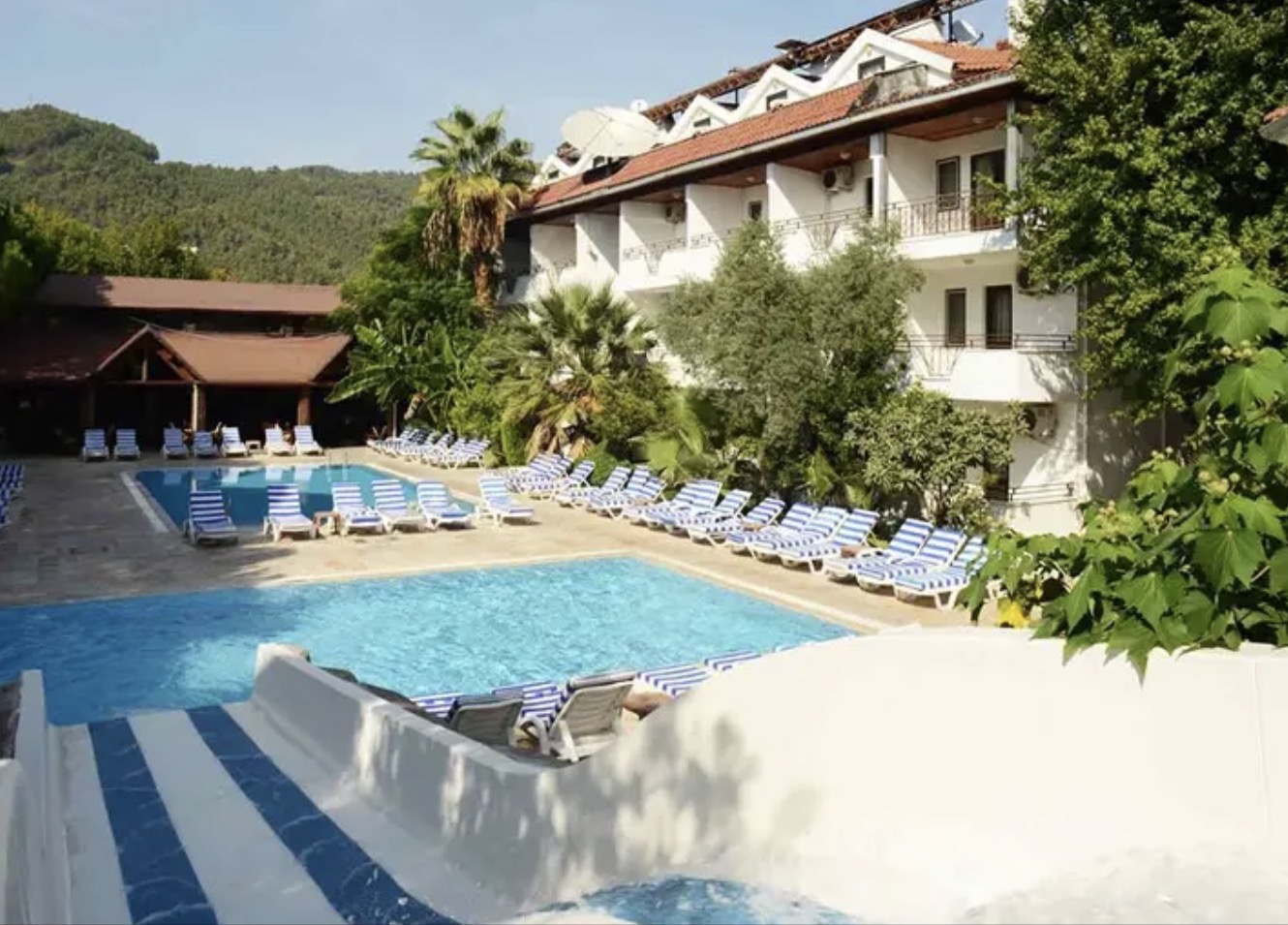 Located in the scenic resort of Icmeler, close to Marmaris, Alvaro Apartments offer a relaxed and welcoming base for both couples and families. With a friendly atmosphere and comfortable accommodation, it’s a great choice for a laid‑back Turkish getaway.Days here are all about sun and splash. The hotel features two outdoor pools and a fun waterslide that younger guests will love, while the spacious poolside terrace invites you to unwind and enjoy the warm Turkish sunshine. If you’d prefer a beach day, the sand‑and‑shingle Icmeler Beach is just a 10‑minute stroll away. Its curved bay, azure waters and lush mountain backdrop make it an especially picturesque spot to stretch out on a sunbed.