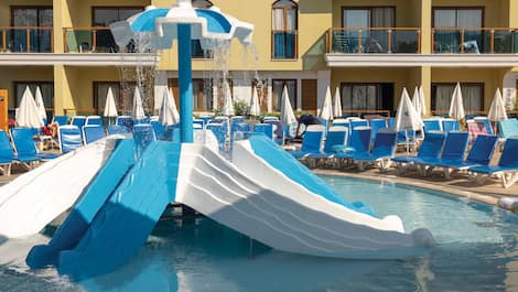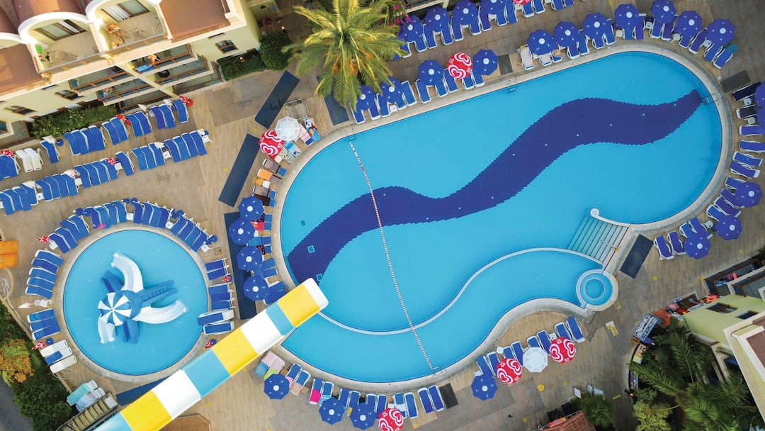 This place has a big lagoon pool that comes complete with a waterslide. On the dining front, there’s a poolside restaurant that hosts a Turkish night every week – expect barbecues and belly dancing.