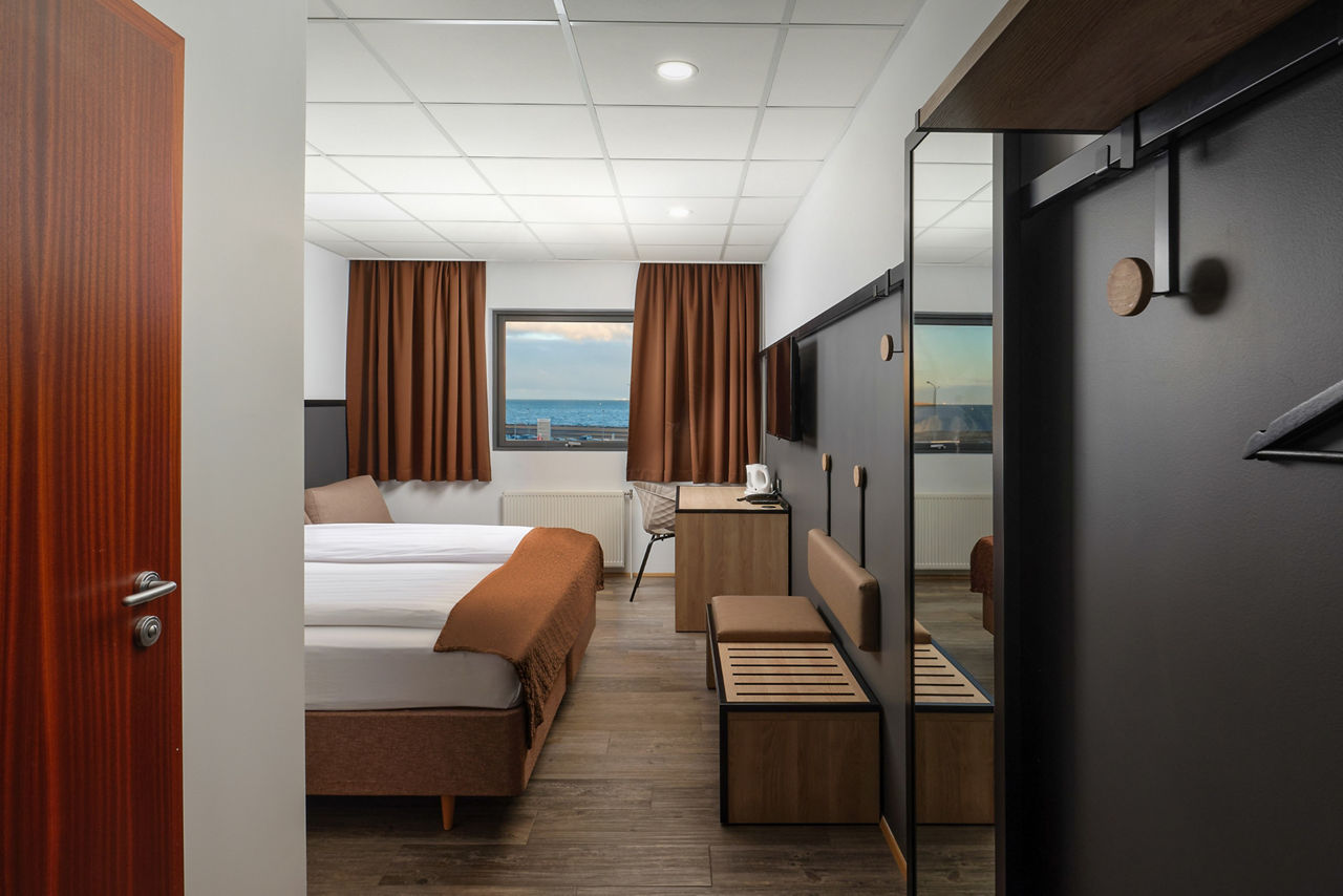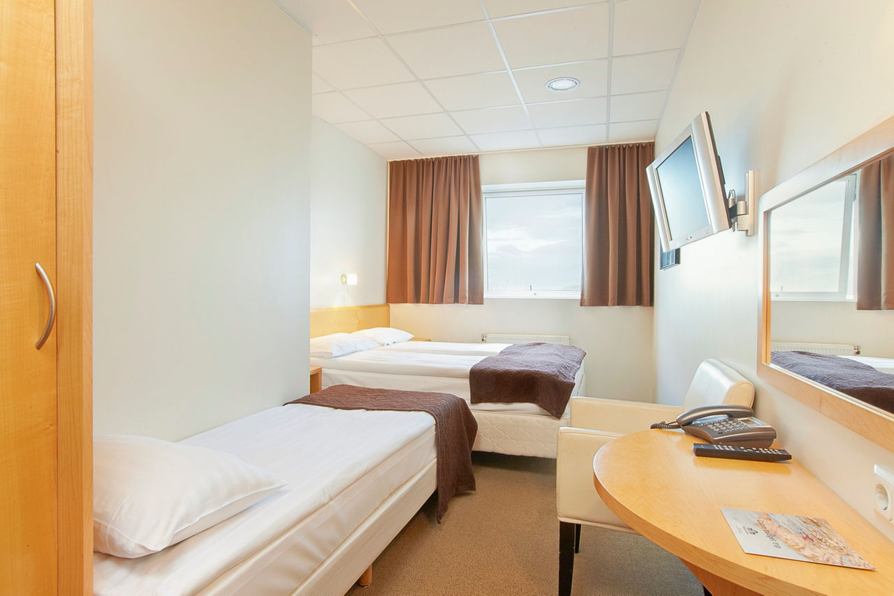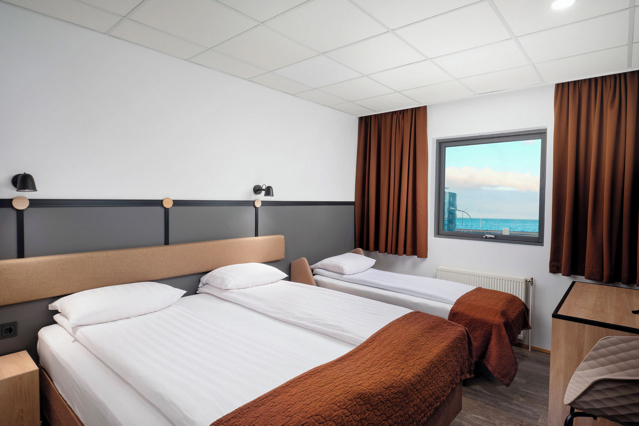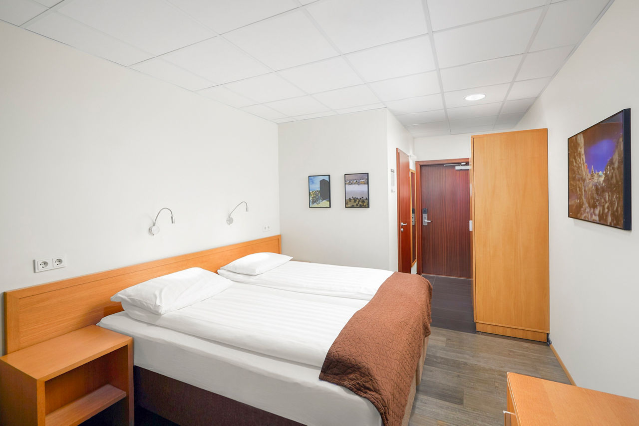 If you are looking for a simple and comfortable hotel with a lively bustling atmosphere whilst visiting Reykjavik, then look no further than Cabin Hotel. Popular with groups, this friendly hotel offers a modest base to lay your head. With a bus stop conveniently located just across the road, you will find yourself exploring all that Iceland has to offer in no time. For spectacular scenic views, head over the road for a lovely evening stroll along the Sculpture and Shore Walk to finish off your busy day sightseeing. Small Double or Twin rooms sleep up to 2 adults and have bathroom containing a shower only and a television. Room upgrade options are also available.
