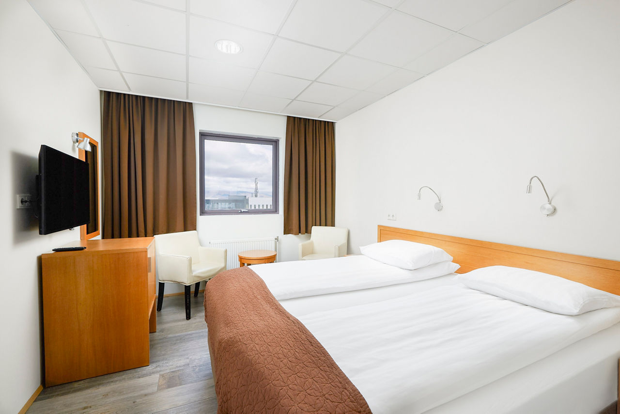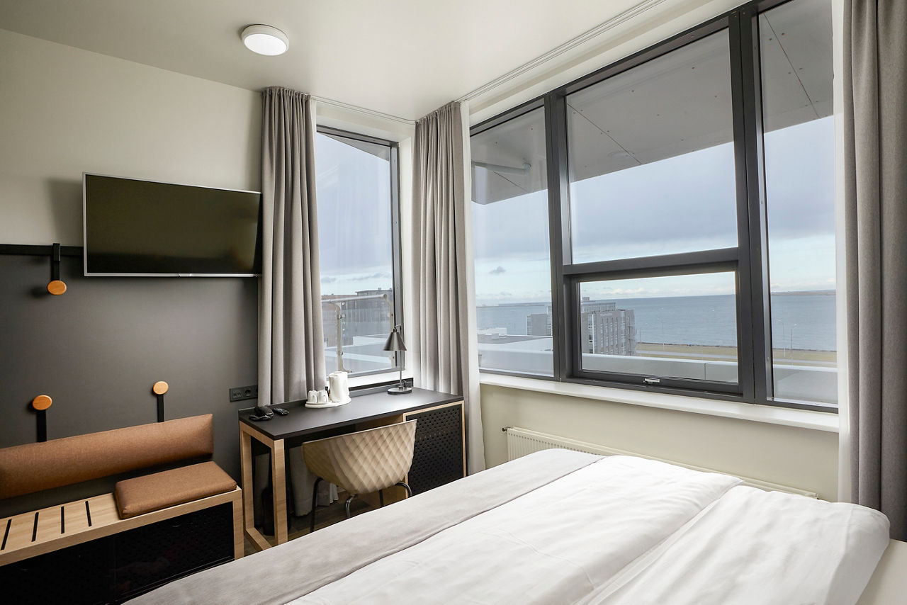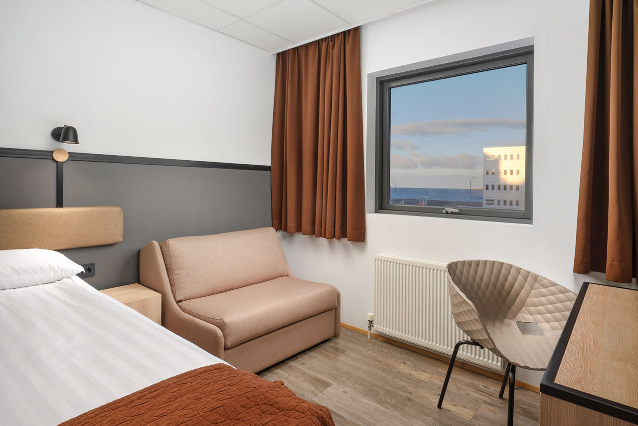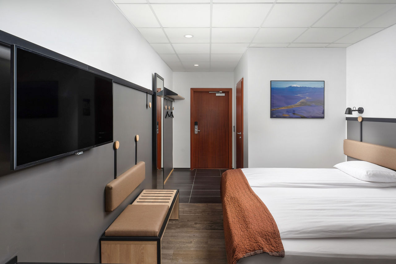 If you are looking for a simple and comfortable hotel with a lively bustling atmosphere whilst visiting Reykjavik, then look no further than Cabin Hotel. Popular with groups, this friendly hotel offers a modest base to lay your head. With a bus stop conveniently located just across the road, you will find yourself exploring all that Iceland has to offer in no time. For spectacular scenic views, head over the road for a lovely evening stroll along the Sculpture and Shore Walk to finish off your busy day sightseeing. Small Double or Twin rooms sleep up to 2 adults and have bathroom containing a shower only and a television. Room upgrade options are also available.