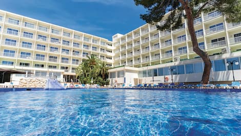 Little ones have their own splashing spot and playground, and there’s a hotel-run kids’ club putting on games and activities throughout the day.